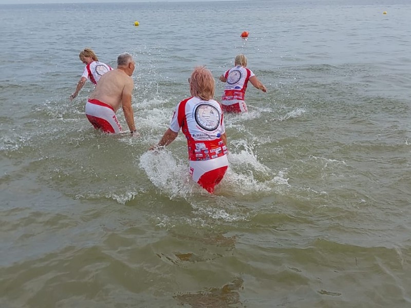 Dziś rano, po śniadaniu, wyruszyli z Gniewina i już około 10 byli w Swarzewie. O 11 uczestniczyli w uroczystej mszy świętej w Sanktuarium Matki Bożej Królowej Polskiego Morza. Było to zwieńczenie i ukoronowanie religijnego aspektu pielgrzymki. Pozostało jednak dopełnić kolarski wyczyn i dojechać do Helu. Zaraz po mszy cała grupa została zaproszona na obiad do księży w Swarzewie – co roku dzięki ich poświęceniu a także zaangażowaniu lokalnych władz kolarze mogli posilić się przed ostatnią prostą. Ze Swarzewa, w asyście policji kolarze udali się na Cypel Helski. Zrobili sobie jeszcze postój w Jastarni – tutaj właściciel pensjonatu „Duna” co roku gości uczestników pielgrzymki, podejmując ich pyszną grochówką a także wędzonymi rybami. Posileni i szczęśliwi pielgrzymi po raz ostatni wsiedli na rowery i dojechali do celu. W Helu zrobili sobie zdjęcie przy Kopcu Kaszubów, a następnie większość z nich zasłużenie wskoczyła do wody Bałtyku.